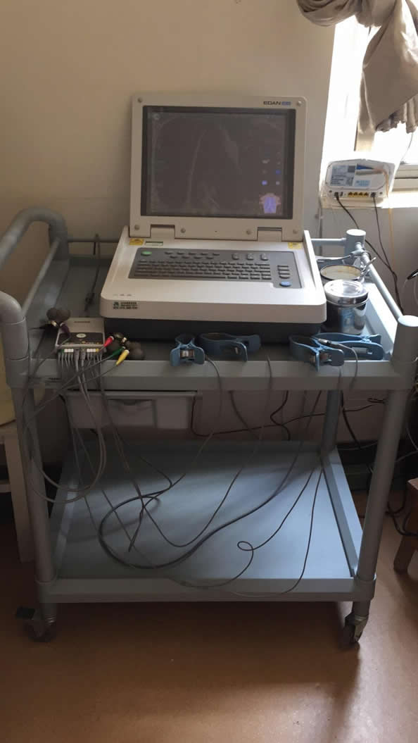 科室长久以来承担着门诊、住院部的常规心电图检查。我院心电图室现配备美国Mortara ELI250-12导同步心电图机及EDAE SE-18导数字式心电图机。配备具有经验丰富、从事多年临床及心电专业的医生,曾到省级医院进修学习,具有丰富的阅图经验,能够准确及时的发出报告,为临床提供可靠的诊断依据。能够正确诊断窦性心律和异位心率;窦性心律中的窦性心动过缓、窦性心动过速、窦性心律不齐;对于急性心肌梗塞的分期、定位,具有明确报告,能够及时发现急性心肌缺血及心肌损伤的情况;对于室性、房性、结性早搏能够定位诊断,对于一些因其他疾病引起的左、右心室,心房的肥大也能给临床提供依据。心房颤动,心房扑动,也是通过心电图得以确诊,而且诊断率较高,另外心室颤动、心室扑动,以及完全或不完全左、右束支传导阻滞和左前分、左后分传导阻滞,另外:Ⅰ度、Ⅱ度、Ⅲ度房室传导阻滞,包括室性、房性、结性逸博、心室停搏、电解质紊乱在心电图上都有明显的表现,以及预激综合征。