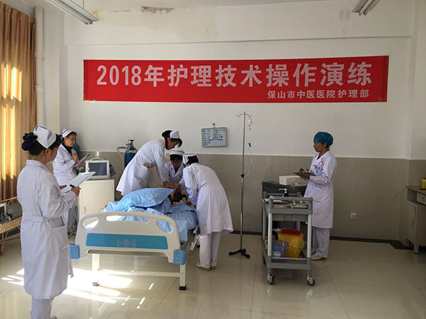 为进一步提升护理人员在紧急情况下的应急能力和急救水平,2018年11月29日,保山市中医医院护理部对全院临床科室0-3级护士进行了“过敏性休克团队急救”三人配合操作考核。