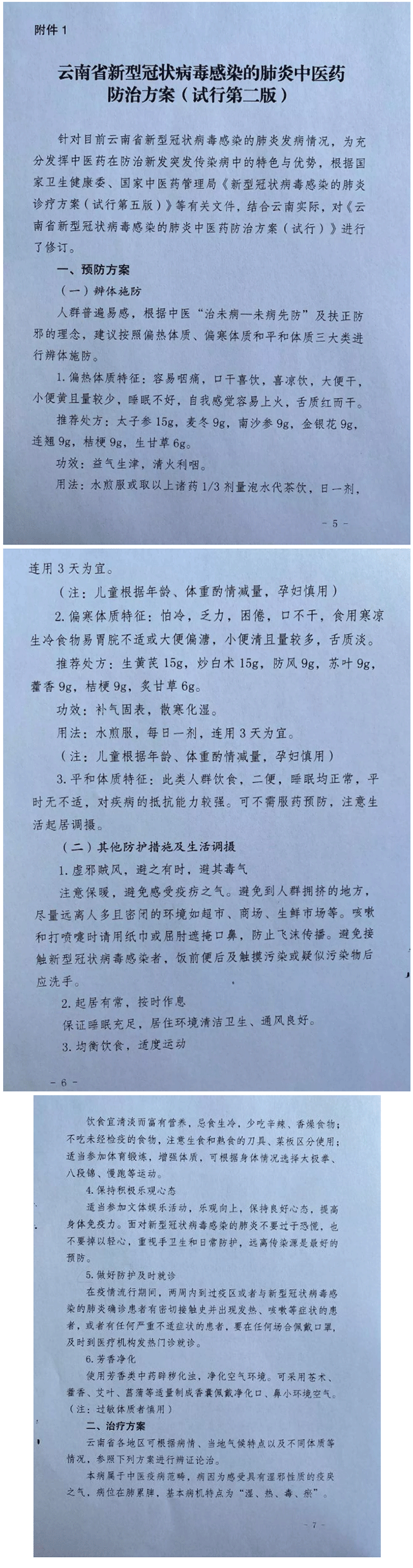 云南省新型冠状病毒感染的肺炎中药防治方案