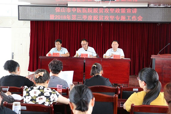 为深入贯彻落实中央、省、市打赢脱贫攻坚战的系列决策部署,充分发挥“挂包帮”“转走访”在精准扶贫、精准脱贫中的重要作用,2018年9月12日,保山市中医医院组织召开2018年第三季度脱贫攻坚专题会议,医院一、二、三级班子成员及所有挂户帮扶责任人共90余人参加了会议。
