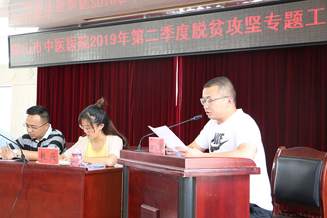 2019年5月16日,保山市中医医院召开2019年第2季度脱贫攻坚专题工作会议,医院一二三级科室负责人及所有挂户帮扶责任人参加了会议。会议对近期脱贫攻坚工作进行了再动员、再部署。