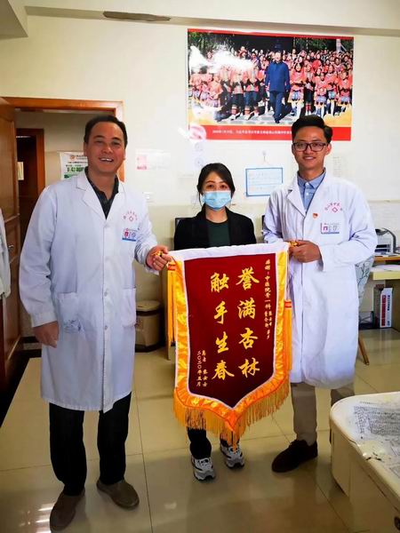 2020年5月10日母亲节这天,保山市中医医院骨伤科一病区收到了一位年轻妈妈送来的特别礼物——一面写有“誉满杏林,触手生春”的锦旗!这面锦旗是去年年底在我院骨伤科一病区住院治疗的张女士送来的,虽然只有一句简洁的话语,但却表达了张女士对我院医务人员的热情服务、精心诊治的高度肯定和赞扬。2019年11月底时,张女士因劳累后出现腰及左下肢疼痛、麻木、活动不利,疼痛较为剧烈,寝食难安,痛苦不堪。后经家人推荐,到我院骨伤科一病区住院治疗。为张女士接诊的是董介轩医生,经过检查,最终诊断张女士为”腰椎间盘突出伴坐骨神经痛”。针对张女士的病情,骨伤科一病区主任张云峰带领董医生为她进行了“腰椎间盘摘除手术”治疗,手术非常成功。在术后康复期间,董医生和科室护理人员每天指导其合理饮食、用药,按时按点的进行术后康复锻炼。经过一段时间的精心治疗和悉心照料,张女士很快便好转出院,到今年5月份,疾病已经痊愈。为了表达心中的感谢,张女士特地做了一面锦旗,并亲自带着锦旗送到了张云峰主任和董介轩医生的手中。