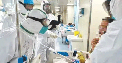 69岁的武汉市民老王发烧、咳嗽、喘息严重,被确诊为新冠肺炎。老王是坐着轮椅,被护士推进病房的。入院后,老王呼吸困难,缺氧严重,用上了呼吸机,血氧指数也只有80多一点,不断打寒颤,病情逐渐加重,不能起床活动。
