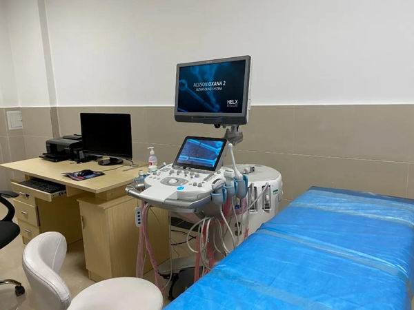 全新的超声科布局合理,窗明几净,宽敞明亮,设有3间超声检查室,导诊台、卫生间、候诊椅、会议室及医生办公室、休息间等配套设施完善,既满足了业务工作开展的需要,为广大患者提供了一个整洁、温馨、舒适的就医环境,也凸显了对患者及职工的人文关爱。