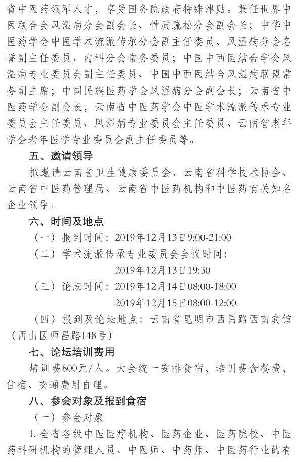 关于举办首届滇南医学流派学术发展论坛云南吴佩衡扶阳学术思想与临证经验学习班的通知
