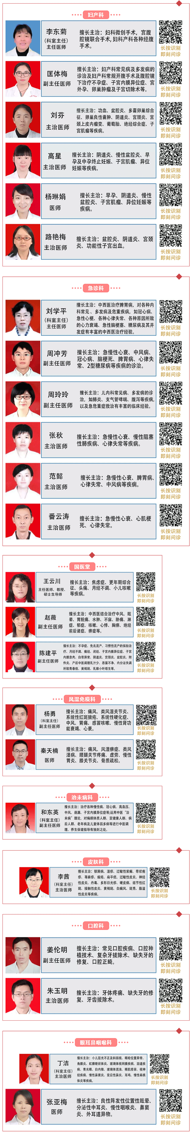 此次提供咨询服务的科室:肛肠科、骨伤科(一病区、二病区)、针推科、内一科、内二科、外一科、外二科、急诊科、妇产科、国医堂、治未病科、皮肤科、眼耳鼻喉科、口腔科。