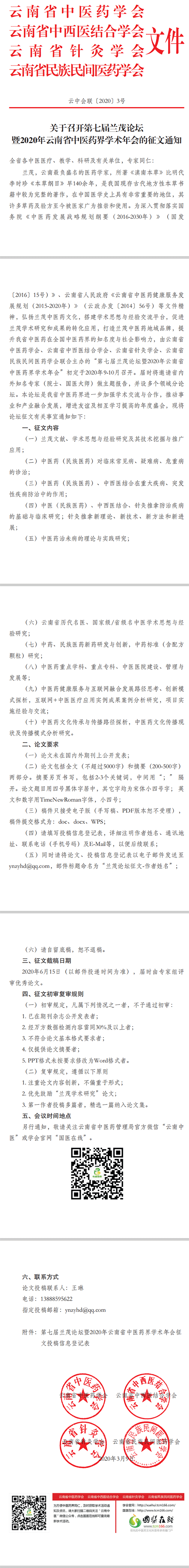 关于召开第七届兰茂论坛暨2020年云南省中医药界学术年会的征文通知