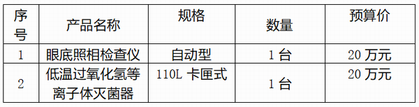 (眼底照相检查仪详见附件一、低温过氧化氢等离子体灭菌器附件二)