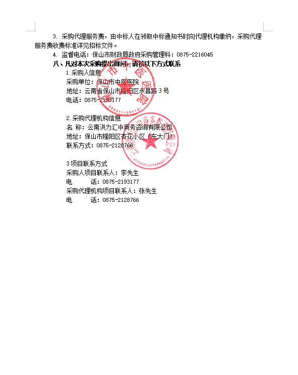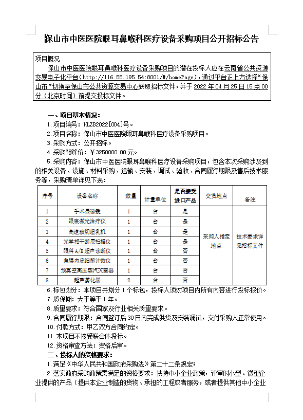 保山市中医医院眼耳鼻喉科医疗设备采购项目公开招标公告