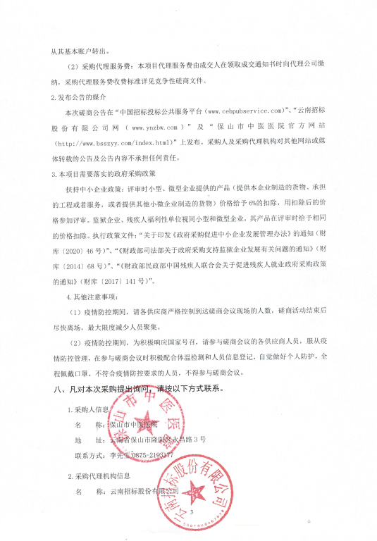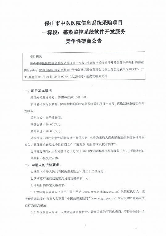保山市中医医院信息系统采购项目一标段:感染监控系统软件开发服务竞争性磋商公告