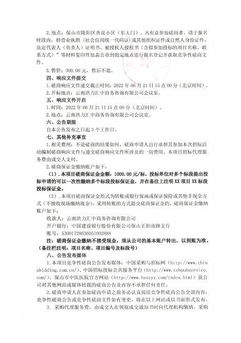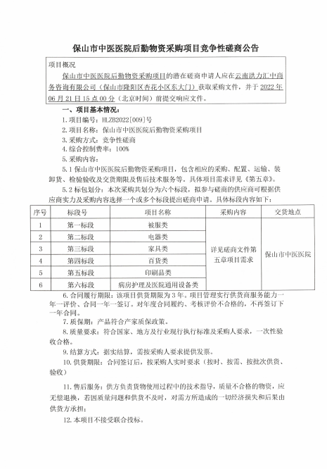保山市中医医院后勤物资采购项目竞争性磋商公告