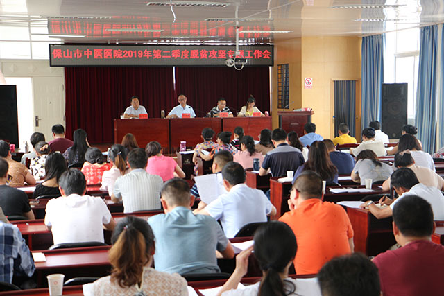 2019年5月16日,保山市中医医院召开2019年第2季度脱贫攻坚专题工作会议,医院一二三级科室负责人及所有挂户帮扶责任人参加了会议。会议对近期脱贫攻坚工作进行了再动员、再部署。