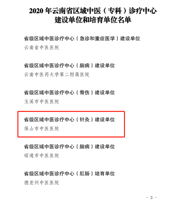 为进一步完善中医专科专病防治体系,科学划分重点专科层次,充分发挥重点专科的辐射和带动作用,近日,云南省卫生健康委公布了省级第二批区域中医(专科)诊疗中心建设单位和培育单位,我院针灸专业入选省级区域中医诊疗中心建设单位。