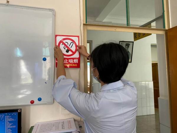 增设禁烟标识,加强控烟督导工作,时时处处提醒大家我院是无烟医院,吸烟有害身体健康。