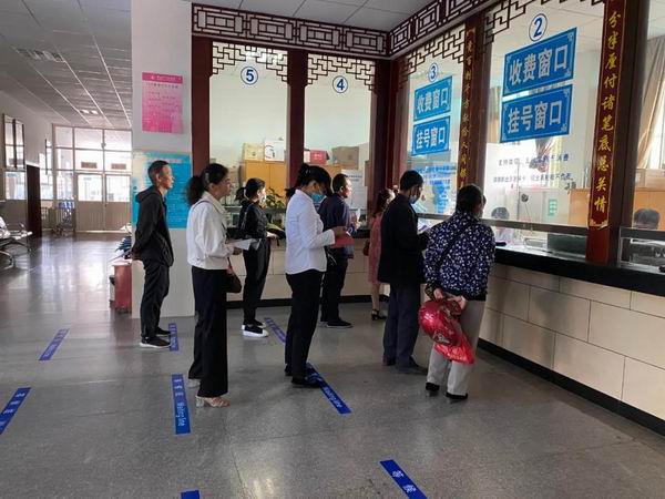 在住院部、门诊大厅收费室、药房等窗口划出了间隔一米的等候线,督促大家排队等候、交谈保持“安全距离”。
