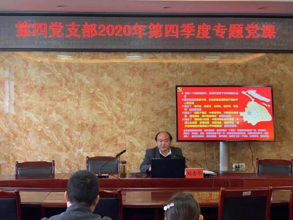 2020年12月23日下午,我院第三、四党支部邀请院党委刘贵华书记上了一堂主题为“不忘初心来时路,砥砺奋进新征程”的专题党课。除值班人员外,第三、第四党支部全体党员参加了学习。