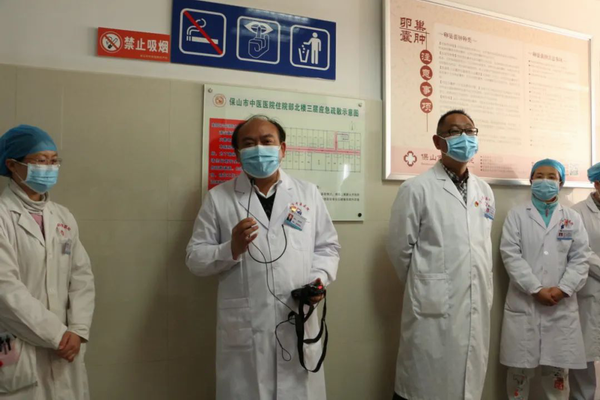 在当前新冠肺炎疫情防控形势下,为进一步做好常态下疫情防控及应急处置工作,保障群众来院看病就医的健康安全,2月10日,保山市中医医院组织开展了新冠肺炎疫情防控应急演练。为了进一步查找不足,抓细抓实各项防控工作,结合医院实际,演练共设置病区缓冲病房发现核酸检测阳性患者及医院门口监测点发现发热患者两个场景。