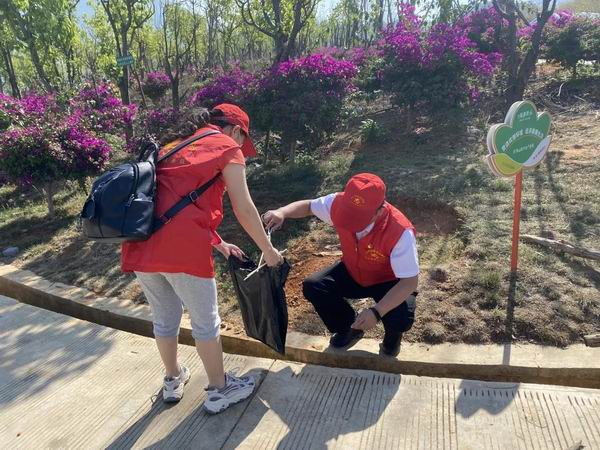 为进一步引导广大市民树立环境保护理念,提升文明素质,活动中,志愿者们身穿红色志愿者服,拿着垃圾袋、火钳等清洁工具,捡拾果皮、烟蒂、塑料瓶等各种垃圾,无论是裸露在草坪上的,还是在石缝、灌木丛中、水沟里的,都被志愿者们通通“擒拿带走”。