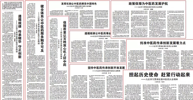 为更好地推动中医药行业深入学习贯彻上述大会精神,凝聚全行业智慧和力量推动中医药传承创新发展,中国中医药报社集采编部门全部力量,史无前例推出了重磅系列评论,九论学习贯彻全国中医药大会精神,从遵循中医药发展规律、健全中医药服务体系、发挥中医药独特优势、保障中药材质量、加强中医药人才培养等方面一一论述,总字数达11382,句句有重点、篇篇有力度。一经推送,反响热烈!